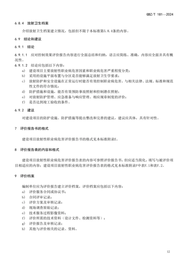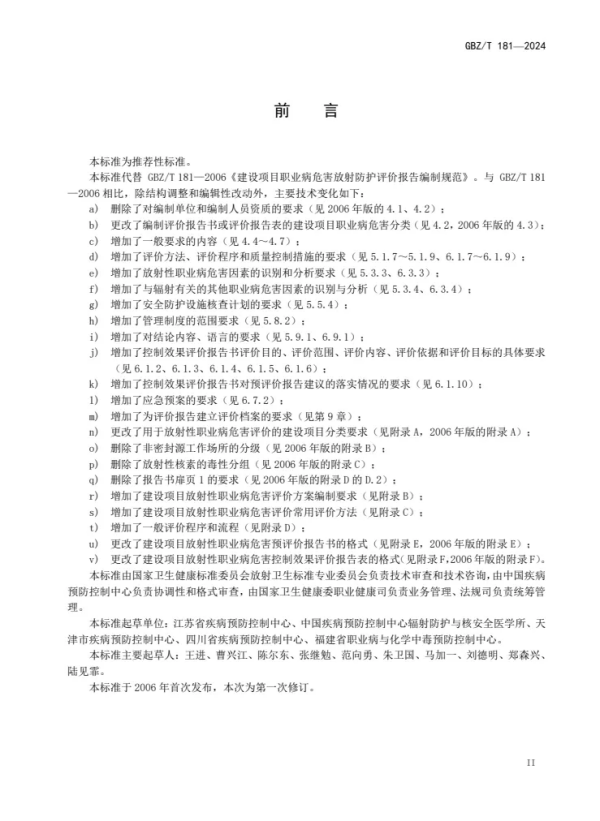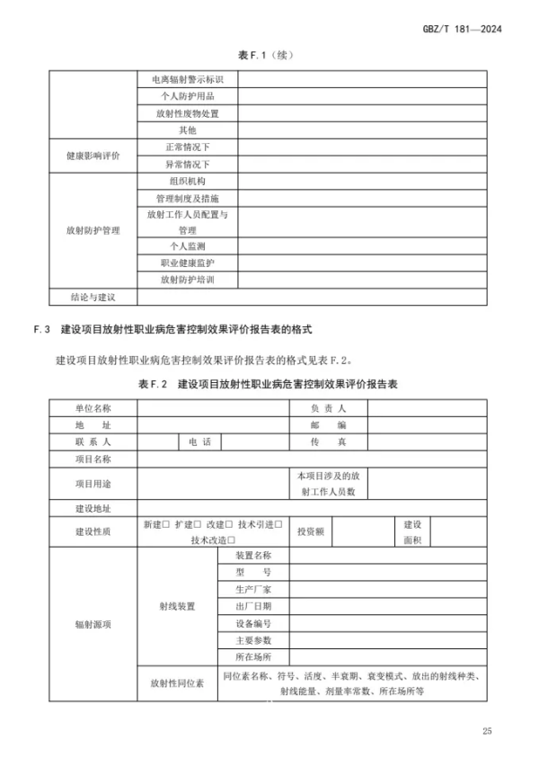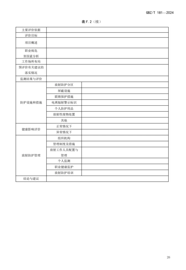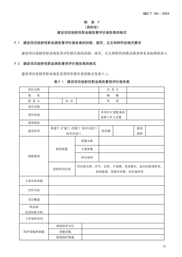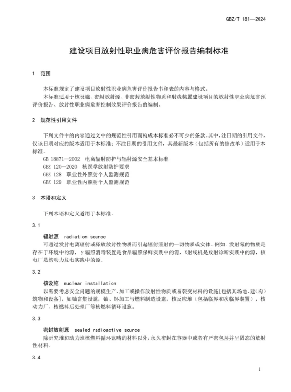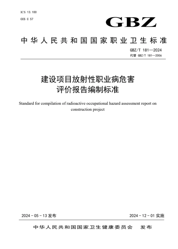 GBZ/T 181—2024 | 建设项目放射性职业病危害评价报告编制标准(代替GBZ/T 181—2006) |