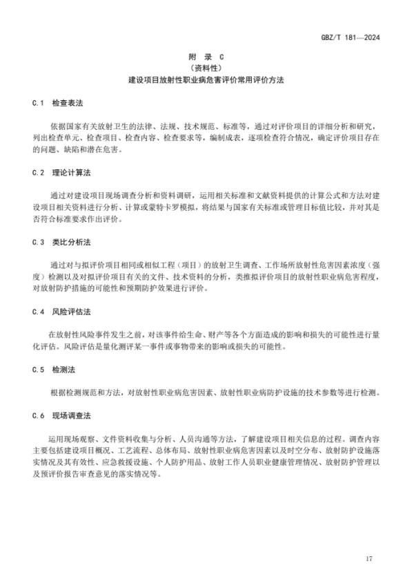 上述5项推荐性标准自2024年12月1日起施行,GBZ/T 181—2006、GBZ/T 216—2009、GBZ/T 256—2014、GBZ/T 233—2010、GBZ/T 144—2002、GBZ/T 202—2007、GBZ/T 146—2002同时废止。